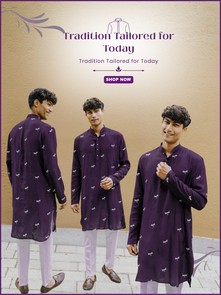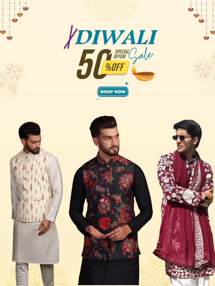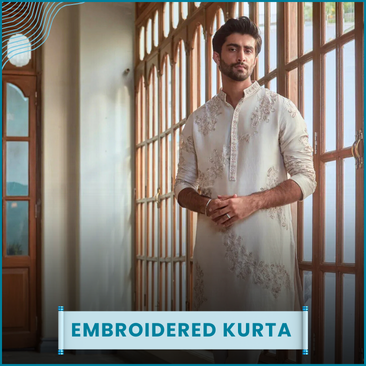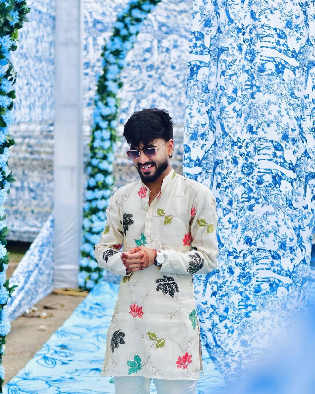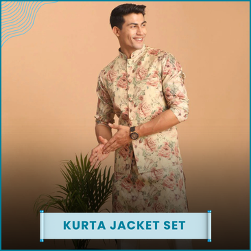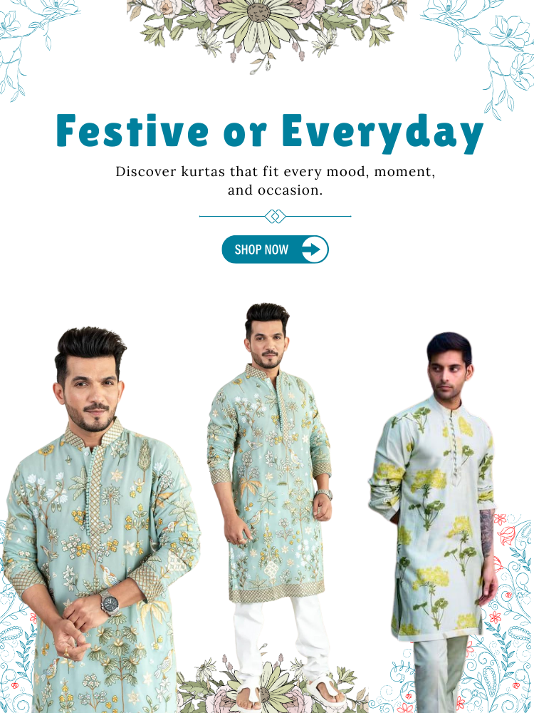 FLORAL EMBROIDERED WORK KURTA PAJAMA SET FOT MEN'S