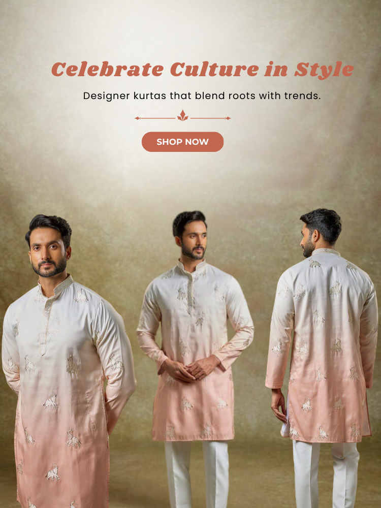 BEIGE MOTIF EMBROIDERED WORK KURTA, PAJAMA SET FOR MEN'S