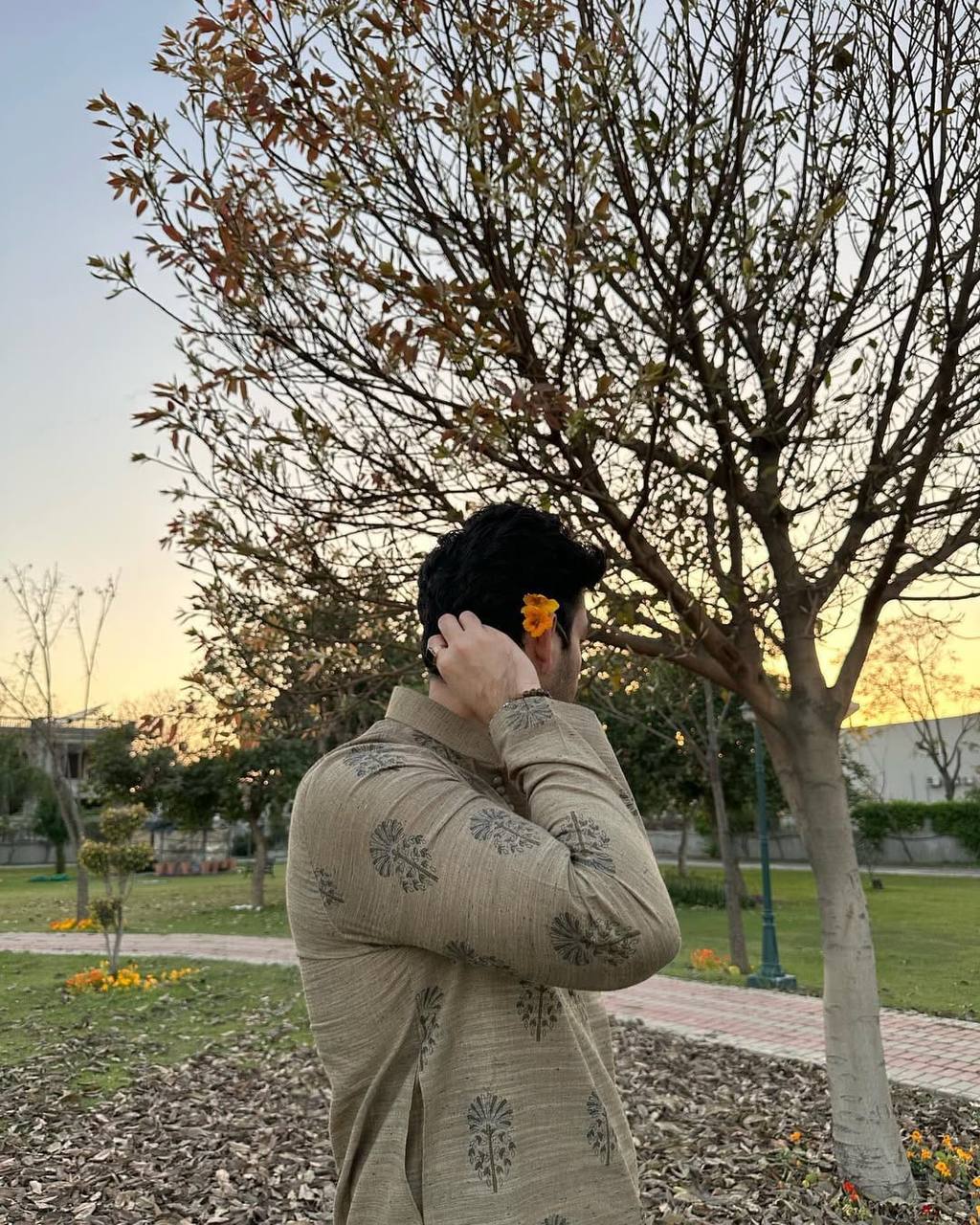 DUSTY GREY kurta that is characterized by its contemporary style stitched with contrast base fabric layered under printed canvas following a special layering technique. Kurta is paired with all around pleaded cotton trousers.